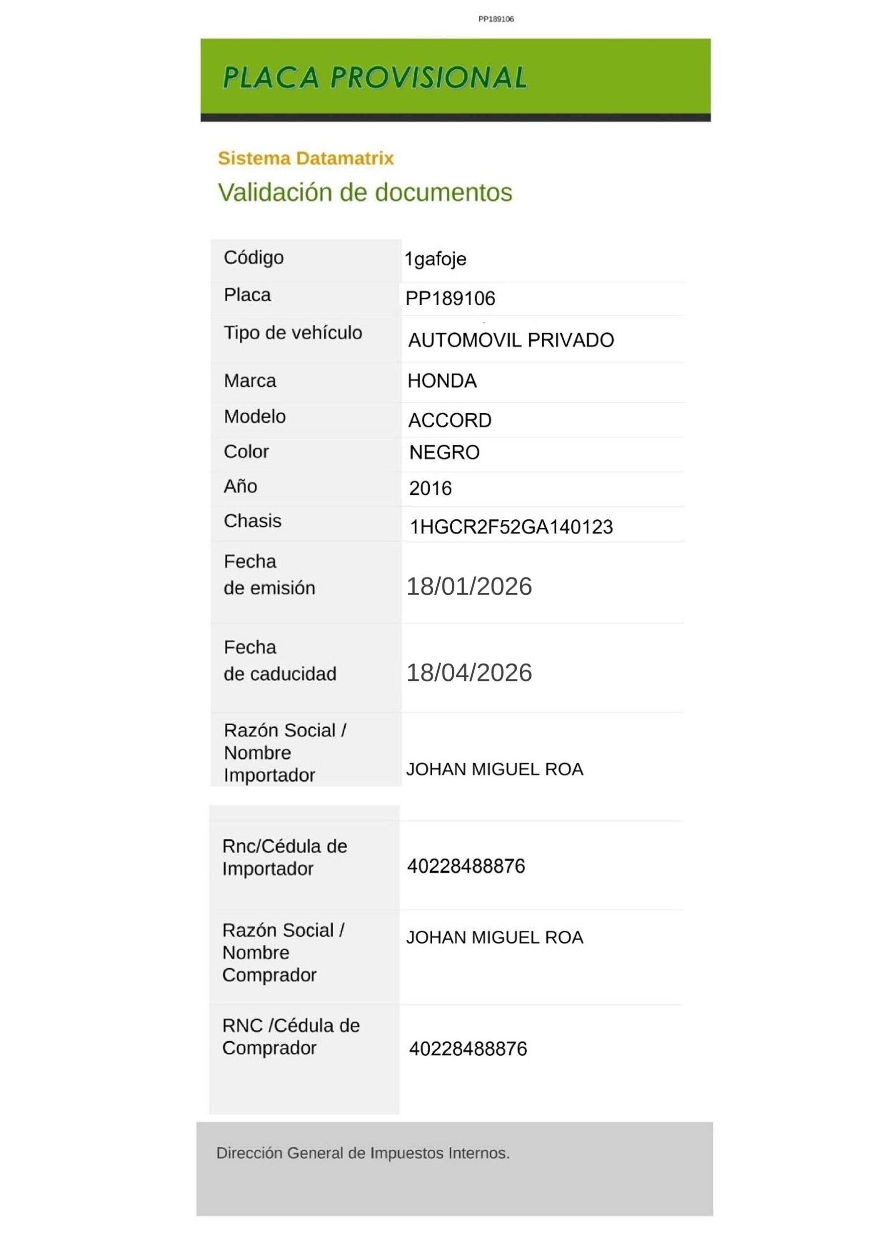 validación de documento